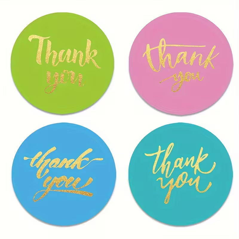 500 unidades Pegatinas Adhesivas de Agradecimiento con Fuente Dorada de 2.54 Cm
