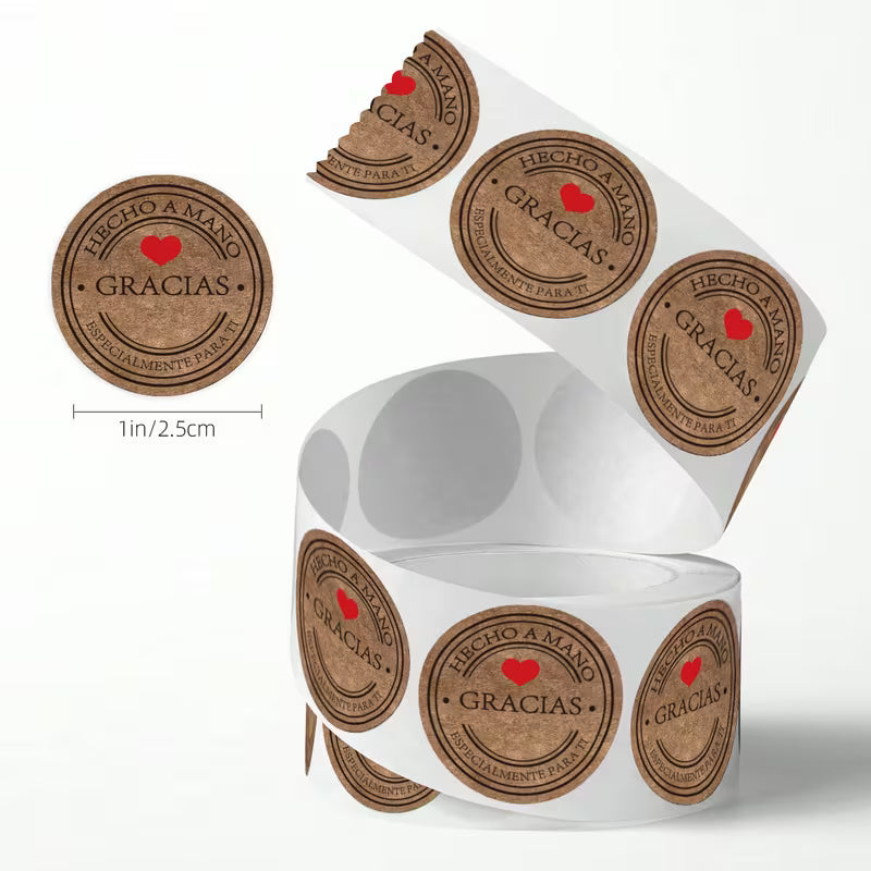 1 Rollo de 500 Hojas, Pegatinas de Embalaje de Papel Kraft Marrón,