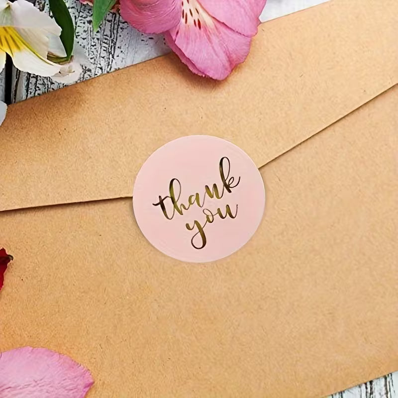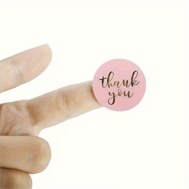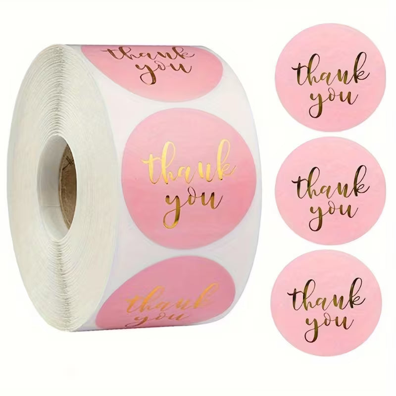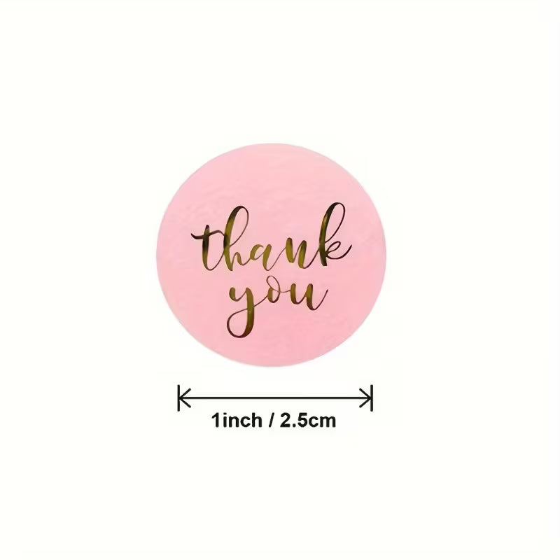 500 Pegatinas de Agradecimiento Rosa en Rollo - Etiquetas Adhesivas Mate Selladas, Redondas de 2.54 cm