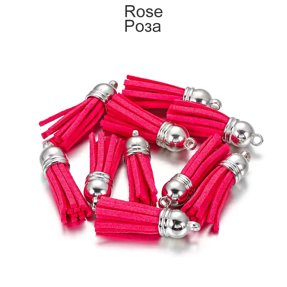 Beautiful 38mm imitation leather tassel, assorted color pack, metal base.