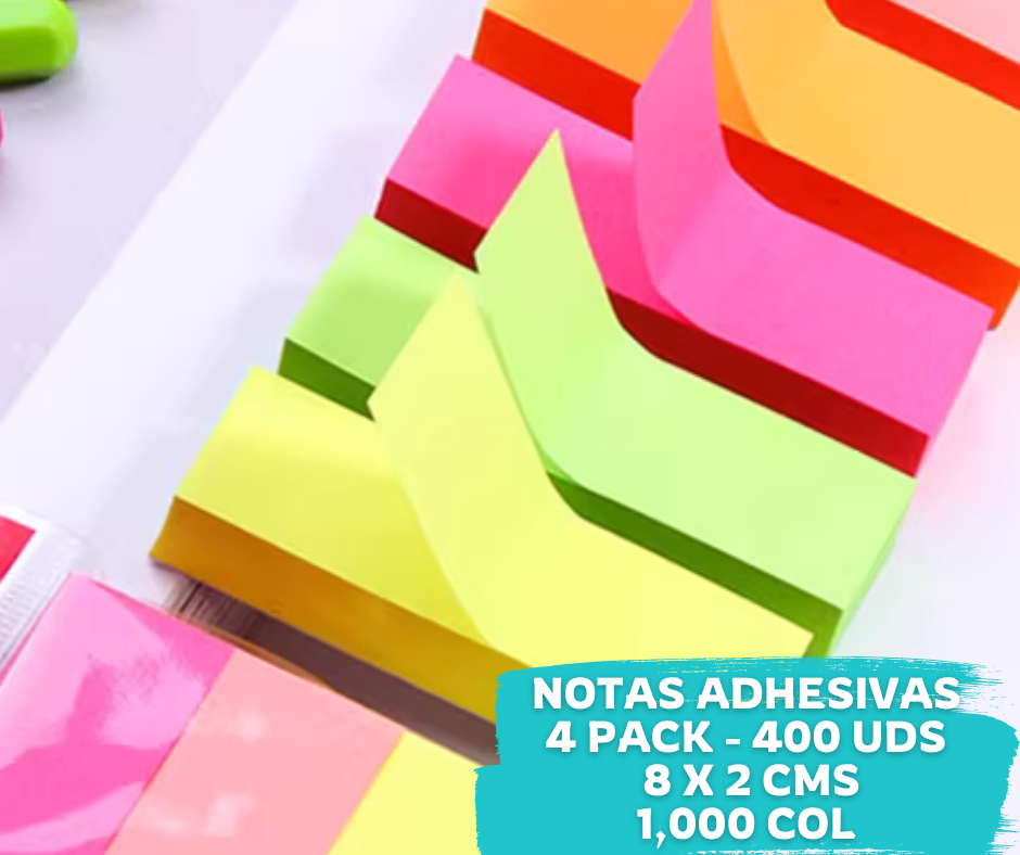 Precioso paquete de notas adhesivas tipo índice, colores neón.