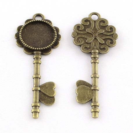 Paquete de 12 dijes de llaves con base para de camafeo de aleacion de metal, color Bronce Antiguo Libre de Cadmio, niquel y Plomo.