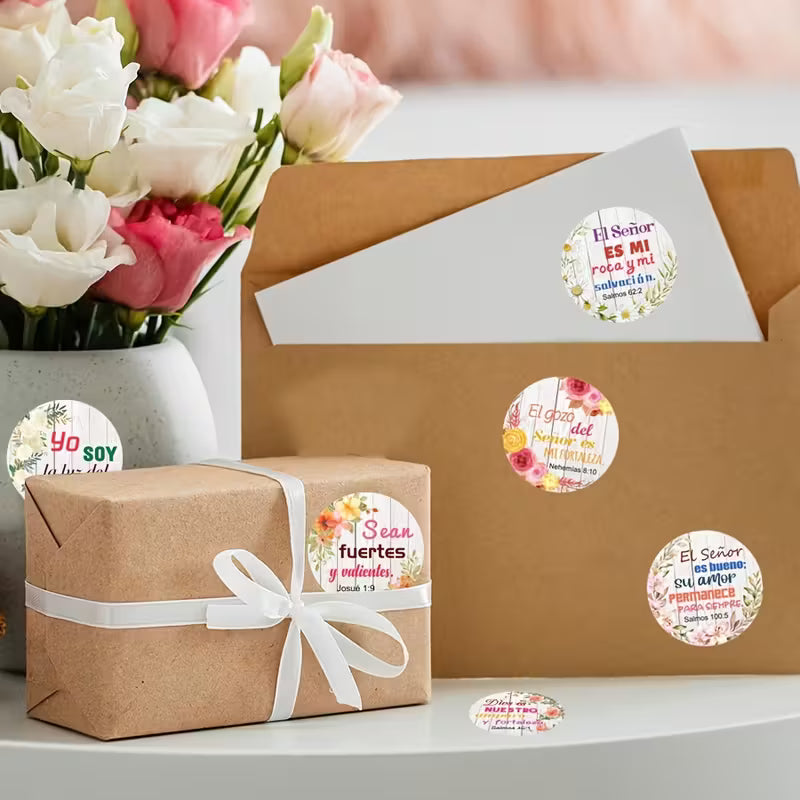 Rollo de 500 pegatinas con versículos bíblicos en español | Pegatinas florales con citas bíblicas cristianas, etiquetas redondas